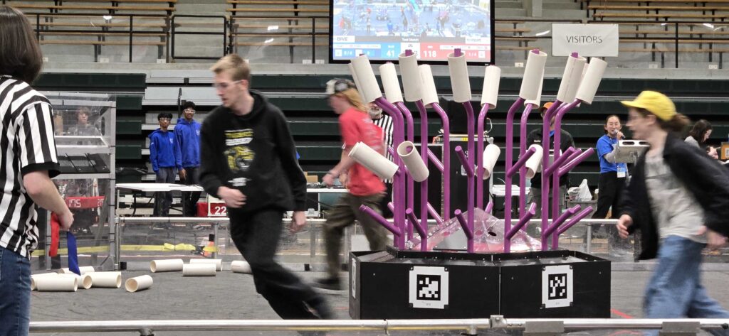 During one of our matches we got stuck on an algae, which resulted in a loss. We were able to overcome this issue and avoid it the rest of the competition. Though we avoided seriously damaging our robot, we did have to rebuild and strengthen brackets for the intake due to repeated collisions with other robots and the coral station.